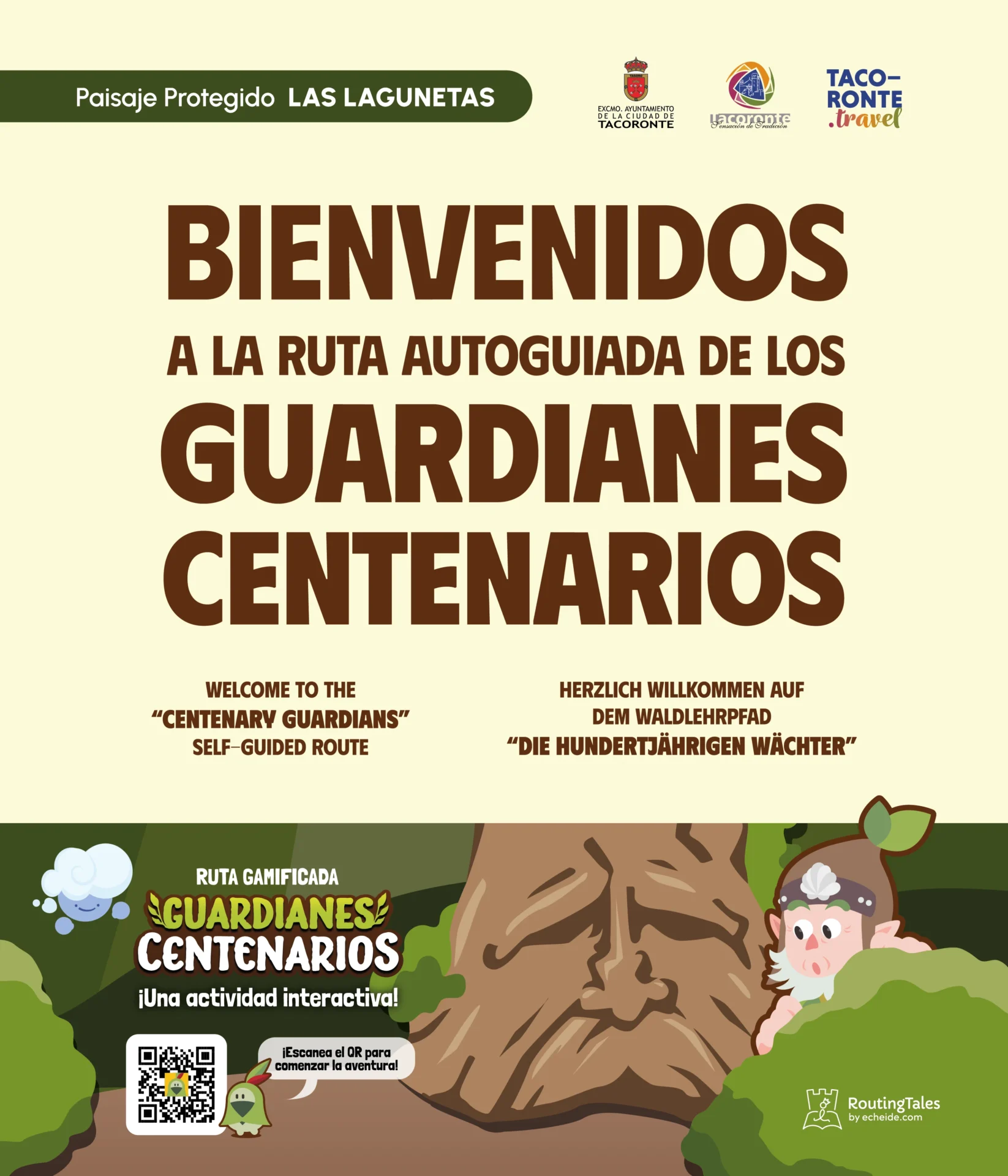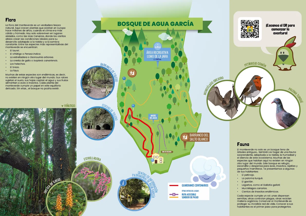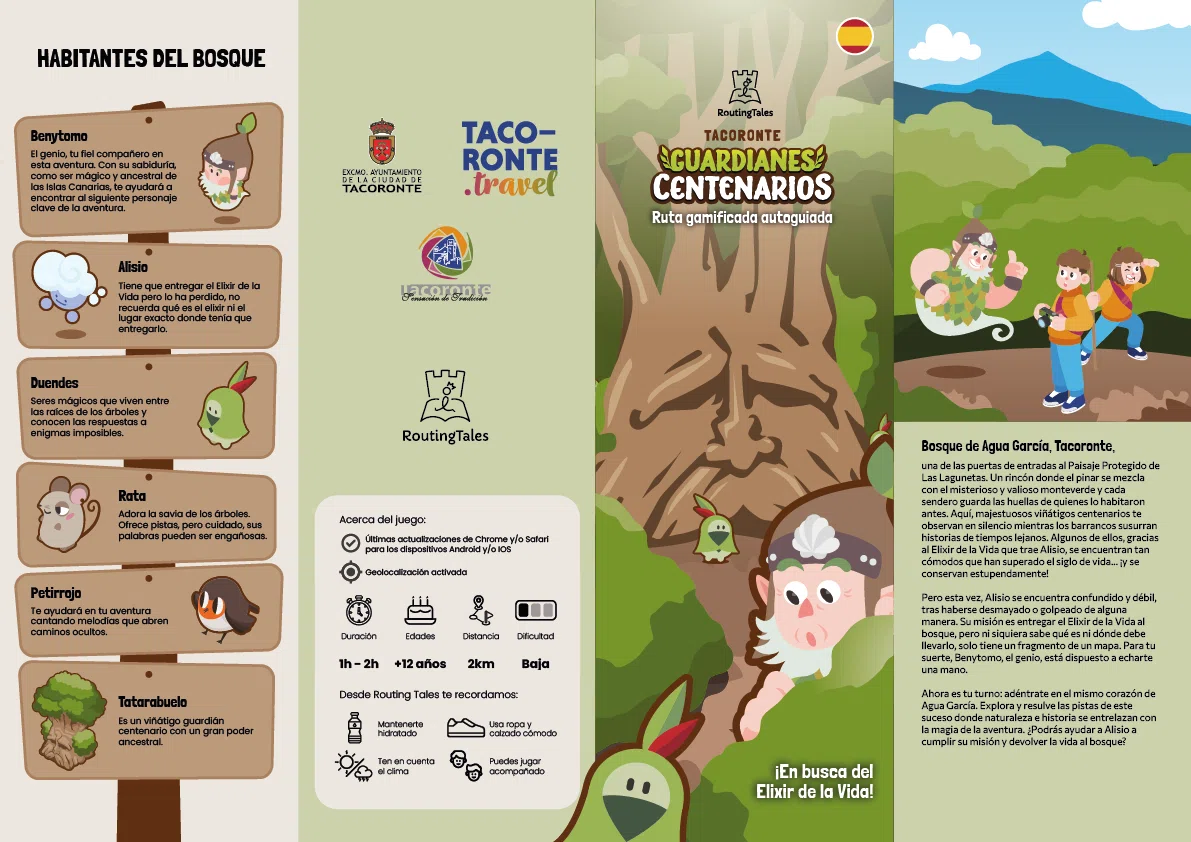 La experiencia ‘Routing Tales’ en Tacoronte presenta «Guardianes Centenarios», un juego de exploración geolocalizada diseñado para descubrir el Bosque de Agua García de una manera interactiva y mágica. A través de una WebApp multidispositivo compatible con Android e iOS, los usuarios se convierten en los protagonistas de una misión vital: ayudar al personaje Alisio a recuperar su memoria y entregar el «Elixir de la Vida» para salvar el bosque.